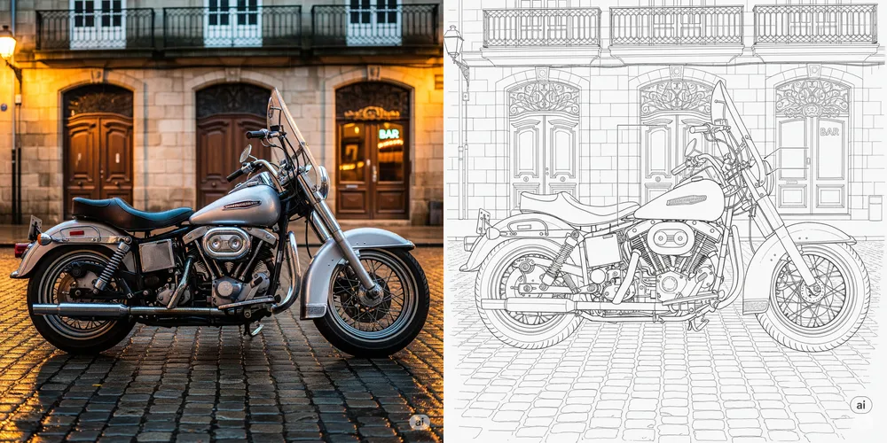 Áp dụng phong cách mới mà giữ nguyên đối tượng: “Ảnh siêu thực tế của xe mô tô cổ điển đậu trên đường phố sương mù.” Sau đó: “Chỉnh thành phong cách bản vẽ kiến trúc chi tiết, với đường nét đen trắng sắc sảo.” Gemini tái hiện xe mô tô theo phong cách mới, hữu ích cho portfolio nghệ thuật hoặc ý tưởng thiết kế, nơi sự đa dạng phong cách là cần thiết.